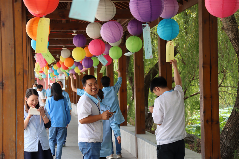 一排排彩燈籠高高掛起,迎風(fēng)搖曳;一條條謎語躍然于紙上,競相生輝,吸引了許多員工駐足參與。本次猜謎活動以中秋節(jié)節(jié)日特點(diǎn)為主線,既有古字今猜,也有吟詩作對。有字謎、成語謎、地名謎、人物謎等,謎語內(nèi)容涵蓋中華傳統(tǒng)文化的各個(gè)方面,內(nèi)容豐富、益智添趣。五彩的謎語如條條彩帶隨風(fēng)飄揚(yáng),員工們穿梭期間,流連忘返,構(gòu)成一道獨(dú)特的風(fēng)景畫。活動現(xiàn)場,熱鬧非凡,員工們看著一個(gè)個(gè)謎語認(rèn)真思考,爭先恐后的互相猜測,猜不出題時(shí)臉上露出疑難之情,猜出答案后興致勃勃的趕緊記下。大家你一言,我一語,猜對者喜笑顏開,滿心歡喜,猜錯(cuò)者則不棄不餒,從頭再來。大家樂中有學(xué),共同領(lǐng)略祖國語言的奇妙無窮。